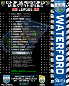 Waterford Senior Hurling Manager, Peter Queally, has announced his starting lineup to face Kerry in the Co-Op Superstores @MunsterGAA Senior Hurling League tomorrow evening:
