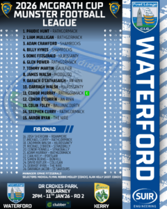 Waterford Senior Football Manager, Ephie Fitzgerald, has announced his starting lineup to face Kerry in the McGrath Cup – Munster Senior Football League: